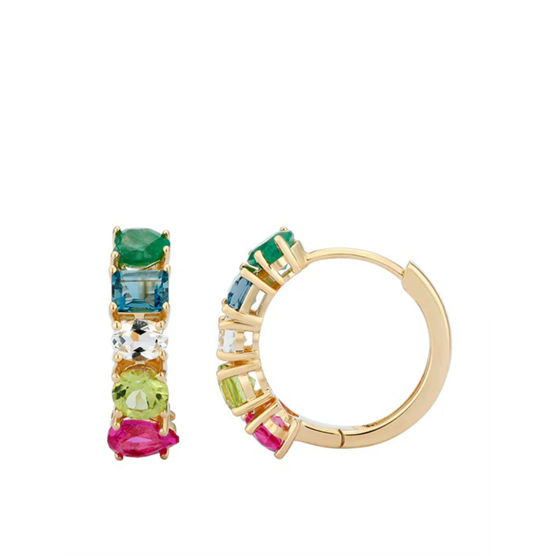 Multi-shape Rainbow Huggies MATERIALS Gold, Natural Diamonds and Gemstones. Available in all colors: 14K Yellow...