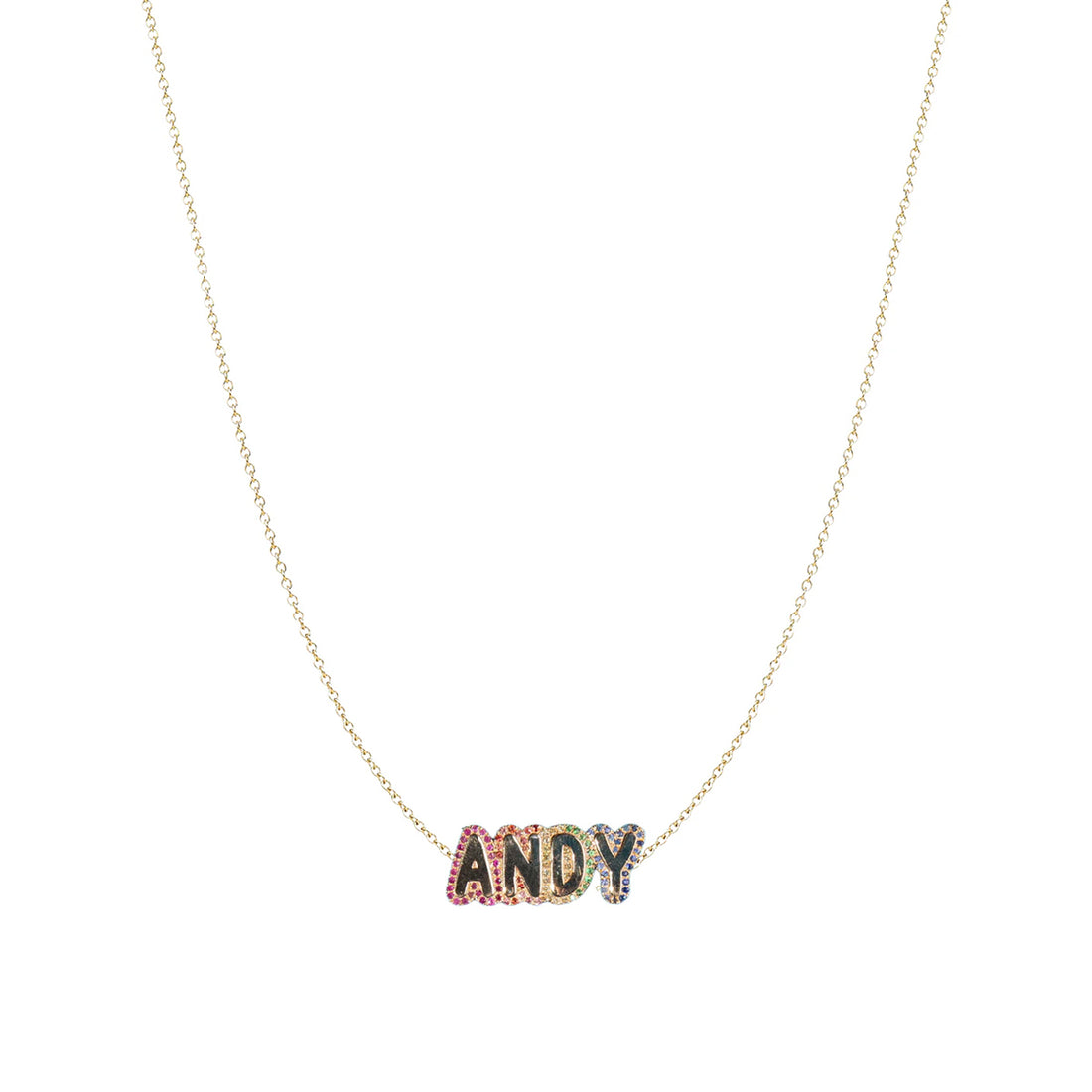 Custom Rainbow Bubble Letter Necklace MATERIALS Available in all 14K Yellow Gold, 14k Rose Gold,...