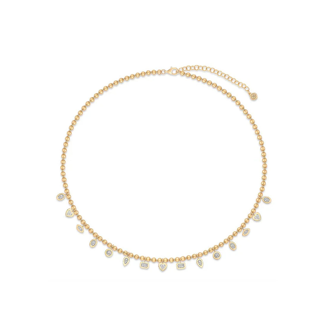 Collar con cadena de bolas y múltiples formas MATERIALES Oro y diamantes. Disponible en todos...