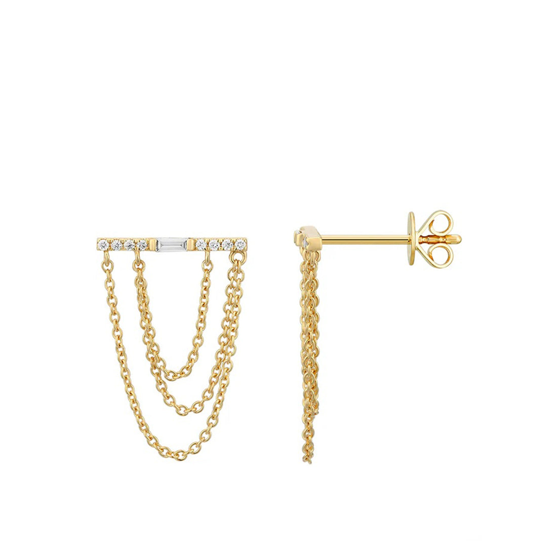 Pendientes de cadena con barra en forma de U (PAR) MATERIALES Oro y diamantes naturales....