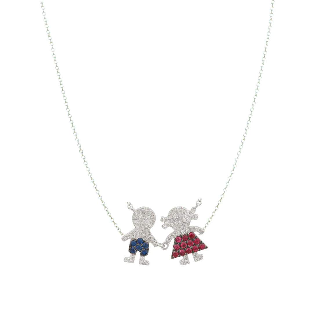 Collar de piedras preciosas para niño y niña MATERIALES Oro, diamantes naturales y piedras preciosas....