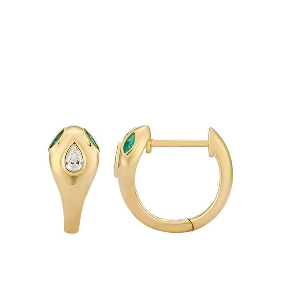 Par de Huggies de serpiente dorados MATERIALES Oro, diamantes naturales y piedras preciosas. Disponible en...