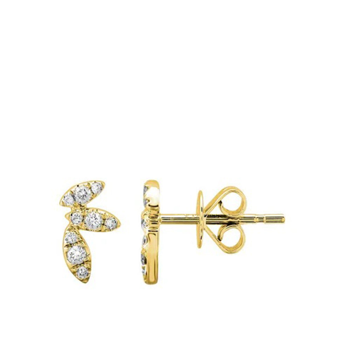 Pendientes de media flor MATERIALES Oro y diamantes Disponible en todos los colores: Oro amarillo...