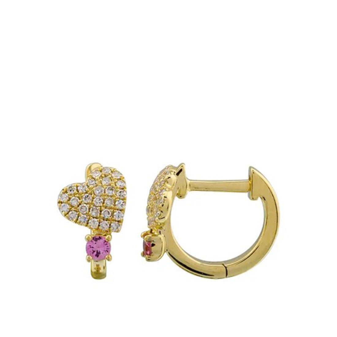 Pendientes Huggie con forma de corazón de diamantes MATERIALES Oro, diamantes naturales y piedras preciosas....