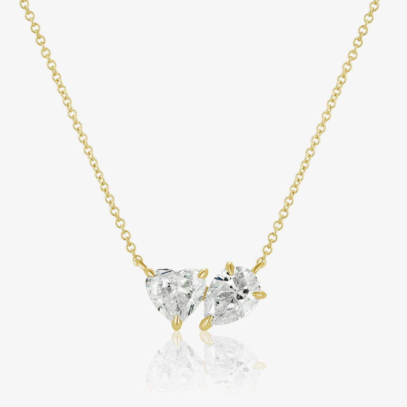 Collar de diamantes en forma de corazón y pera de dos piedras de laboratorio